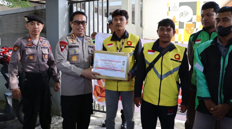 Dalam giat itu, Barliansyah didampingi Pejabat Utama Polresta Palu. Ia mengatakan pihaknya membagikan 100 paket sembako kepada pemulung, tukang ojek online dan pengayuh becak yang ditemui di empat tempat diantaranya, Taman Gor Palu, jalan Sotomo ojek online, jalan kijang tempat pemuluh dan Tps kelurahan Kawatuna Palu.