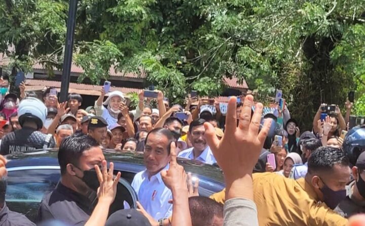Pantauan pertarungannews.id , terlihat mulai anak – anak, remaja sampai orang dewasa berkerumun dan saling berebutan untuk melihat dan ingin menyalami presiden ke 7 RI itu.