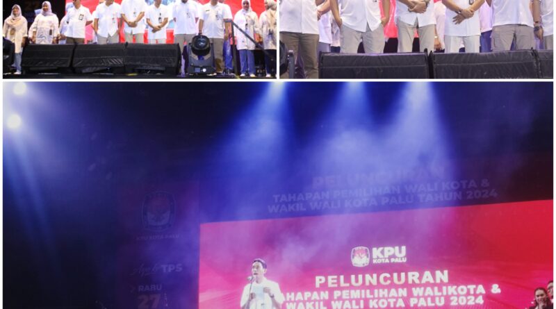 Ril (detaknews.id) – Palu – Komisi Pemilihan Umum (KPU) Kota Palu menggelar Peluncuran Tahapan Pemilihan Wali Kota & Wakil Wali Kota Palu tahun 2024 di gedung Gelora Bumi Kaktus Andi Raga Pettalolo pada malam hari, Rabu, 22 Mei 2024.