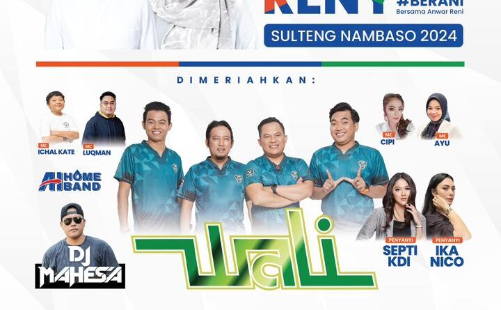 Ilong (detaknews.id) – Banggai – Deklarasi dan temu masyarakat pasangan calon Gubernur dan Wakil Gubernur Sulawesi Tengah 2024, Dr.Anwar Hafid, M.Si – dr.Reny A Lamadjido, M.Kes bawa group band Wali hibur masyarakat desa Taugi Kecamatan Masama Kabupaten Banggai Kamis malam ini (19/9-2024) mulai pukul 19:30 wita sampai selesai.