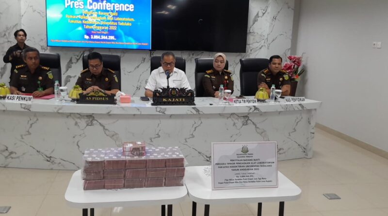Ilong (detaknews.id) – Palu – Kejaksaan Tinggi (Kejati) Sulawesi Tengah berhasil menyita uang tunai senilai Rp3.094.344.295 terkait dugaan korupsi pengadaan alat laboratorium di Fakultas Kedokteran (FK) Universitas Tadulako (Untad) tahun anggaran 2022. Penyidik Kejati telah menerima hasil Perhitungan Kerugian Negara (PKN) dari auditor publik yang menunjukkan adanya kerugian negara dengan nominal tersebut.
