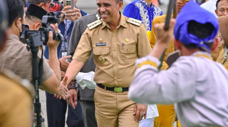 Kedatangan Gubernur Dr.Anwar Hafid beserta rombongan disambut secara adat oleh Wakil Bupati Morowali Iriane IIiyas beserta Unsur Forkopimda Morowali dan Para Kepala Perangkat Daerah Lingkup Kabupaten Morowali.