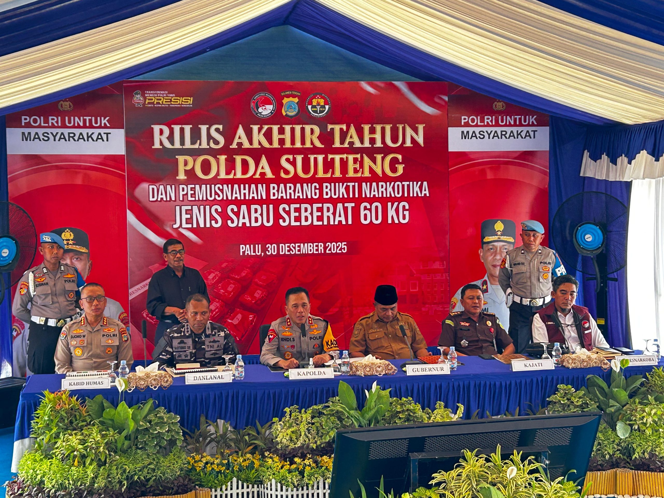 Adapun rilis akhir tahun ini bertujuan untuk memaparkan segala pencapaian yang telah berhasil diperoleh dan dikerjakan oleh pihak Polda Sulteng sepanjang tahun 2025. tercatat tren positif berupa penurunan angka kriminalitas sebesar 12 persen dibandingkan tahun 2024.