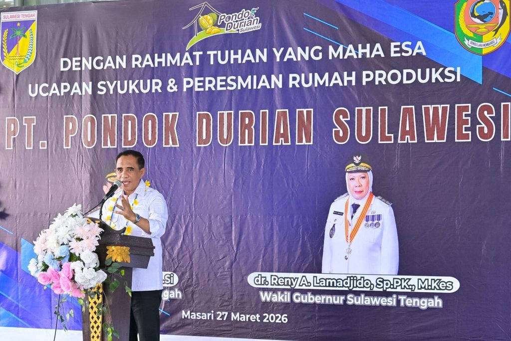 Ilong (detaknews.id) – Parimo – Gubernur Sulawesi Tengah Anwar Hafid meresmikan langsung packing house PT Pondok Durian Sulawesi di Desa Masari, Kecamatan Parigi Selatan, Parigi Moutong, Jumat (27/3/2026). Kegiatan ini berlangsung meriah karena panitia juga menggelar agenda “Berani Makan Durian 1 Ton” yang melibatkan masyarakat setempat.